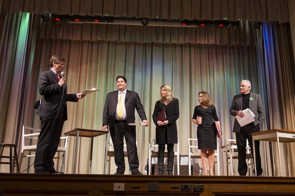 Moderator John Tory introduces the candidates for the Toronto Centre by-election at a debate at Jarvis Collegiate on Nov. 20, 2013. The candidates are, from left: Conservative Geoff Pollack, the NDP’s Linda McQuaig, Liberal Chrystia Freeland and the Green Party’s John Deverell.PHILIP CHEUNG/The Globe and Mail