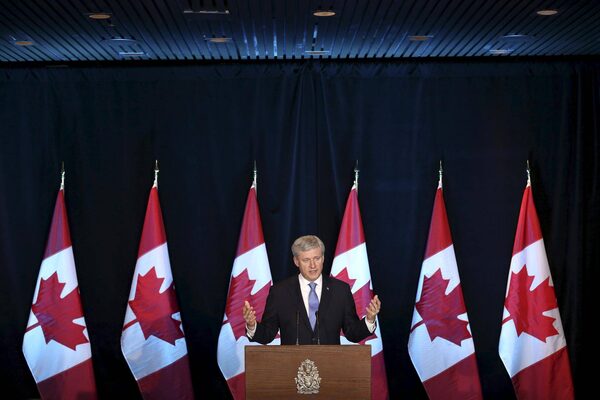 Prime Minister Stephen Harper speaks during a news conference on the Trans-Pacific Partnership trade agreement in Ottawa, Canada October 5, 2015.CHRIS WATTIE/Reuters