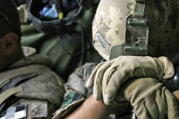 A Canadian soldier rests on the muzzle of his rifle while riding in an armoured vehicle in Kandahar province on Nov. 16, 2007.FINBARR O'REILLY/Reuters