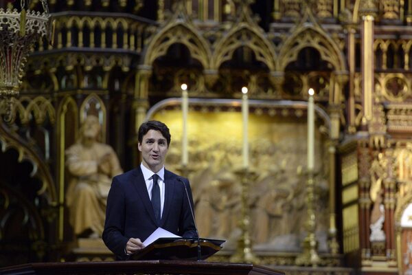 The Prime Minister Justin Trudeau speaks at the Notre-Dame Basilica to mark the 375th anniversary of the founding of Montreal on Wednesday May 17, 2017.Paul Chiasson/The Canadian Press
