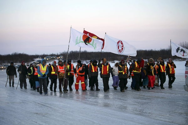Youths march on April 7, 2016, in support of efforts to tackle a sharp rise in suicide rates in Attawapiskat, Ont.Reuters