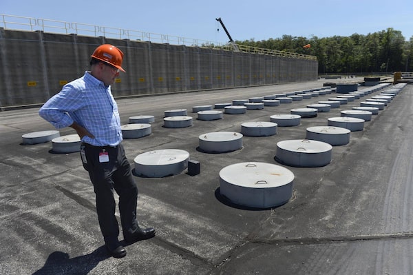 Scott Berry, a manager for Ontario Power Generation, stands beside in-ground structures for storing intermediate level waste at the Bruce Power nuclear plant in Ontario in 2013.Fred Lum/The Globe and Mail
