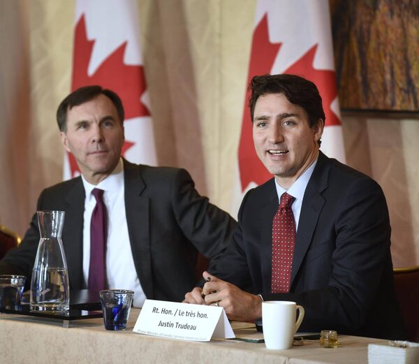 Prime Minister Justin Trudeau and Finance Minister Bill Morneau, Minister of Finance meet with members of the banking and finance community during a meeting in Toronto on Monday morning.Fred Lum/The Globe and Mail