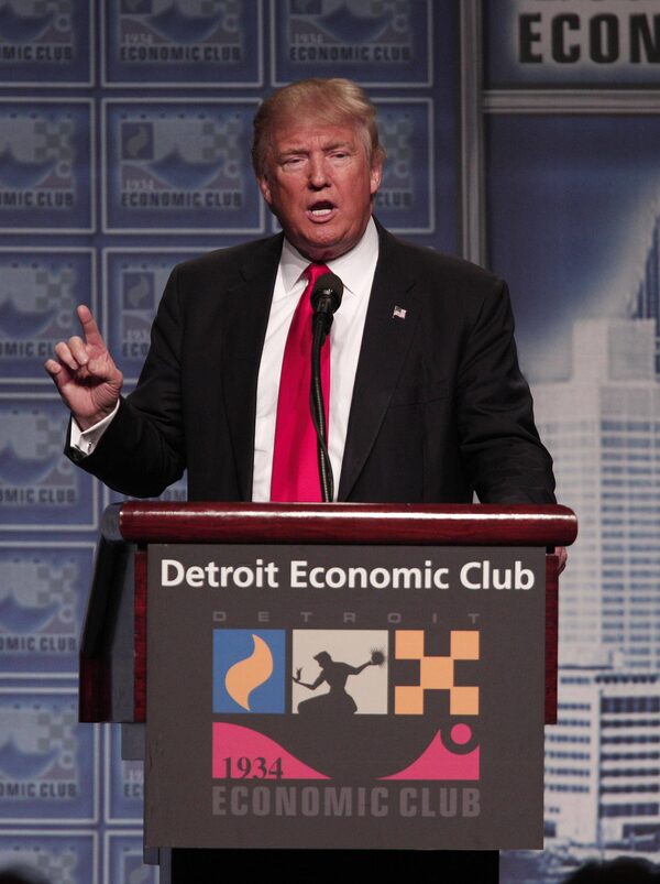 Republican presidential candidate Donald Trump delivers an economic policy address detailing his economic plan at the Detroit Economic Club on Aug. 8, 2016.Bill Pugliano/Getty Images