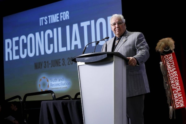 Justice Murray Sinclair speaks at a Truth and Reconciliation Commission of Canada event in Ottawa on June 2. Sinclair said Justin Trudeau and his government could demonstrate leadership by fully implementing the United Nations Declaration on the Rights of Indigenous Peoples.BLAIR GABLE/Reuters