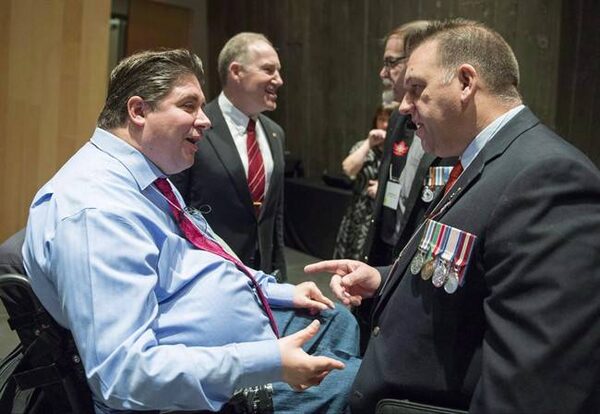Minister of Veterans Affairs Kent Hehr speaks with veterans at a stakeholder summit at the Canadian War Museum in Ottawa on Wednesday, Dec. 2, 2015.Justin Tang/The Canadian Press