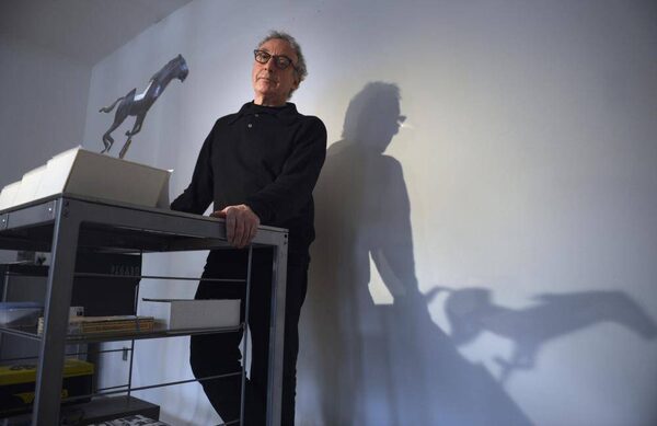 Toronto artist Eldon Garnet stands by a rough model of his proposal for a War of 1812 memorial sculpture in his Toronto studio on March 19, 2013.FRED LUM/The Globe and Mail