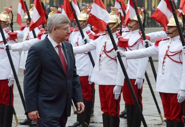Prime Minister Stephen Harper inspects an honour guard at Government Palace in Lima, Peru, on Wednesday, May 22, 2013.Sean Kilpatrick/The Canadian Press