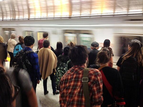 Commuters wait to board a westbound subway at the Keele St. subway station on Sept 30 2014. TTC commuters travelling on the Bloor-Danforth subway line had to stake shuttle buses when service between Keele St. and St. George was interrupted. The east end closure was moved to Ossington station shortly. Buses shuttled passengers between the two ends.Fred Lum/The Globe and Mail