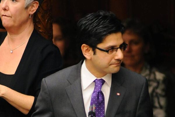 Yasir Naqvi is sworn in as Minister of Labour of Ontario at Queen's Park in Toronto, Feb. 11, 2013.Reuters