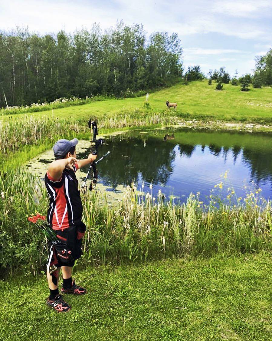 The youngest of five kids in his adoptive family, he grew up playing lots of sports from lacrosse to basketball, football and volleyball. But his father, uncle and grandfather were bow hunters, and watching them practise caught his interest. So he started joining them, and on his 12th birthday, his mom took him to pick out his own bow and a 3D deer-shaped target.