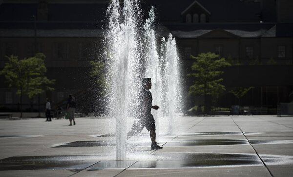 Fountains shoot columns of water up into the air at Nathan Phillips Square on May 30, 2016.Fred Lum/The Globe and Mail