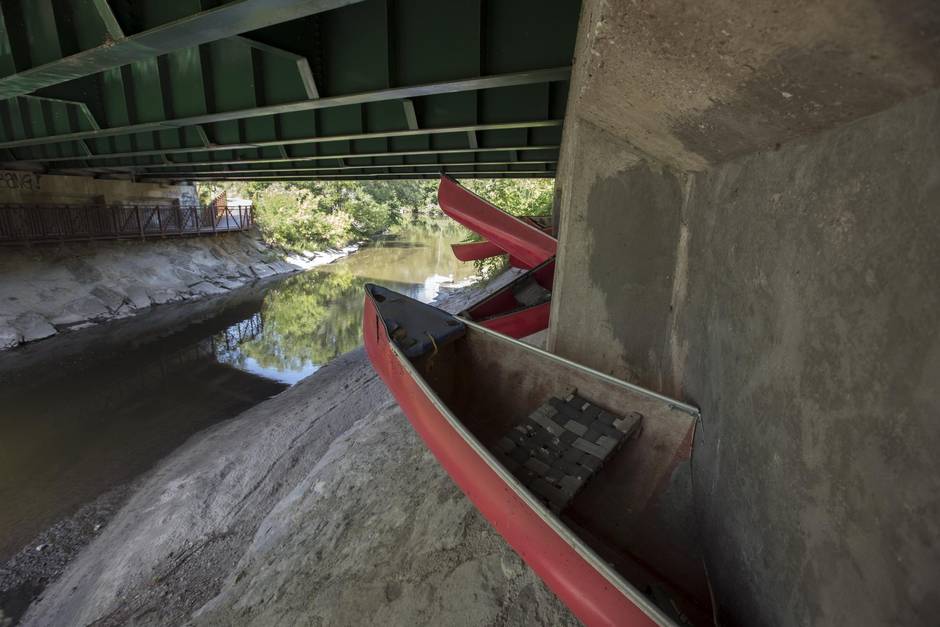 The Don is nowhere to be seen. All that Arlen Leeming can do from his kayak is point with his paddle to show where it once was, where it now is – and where it will soon be.