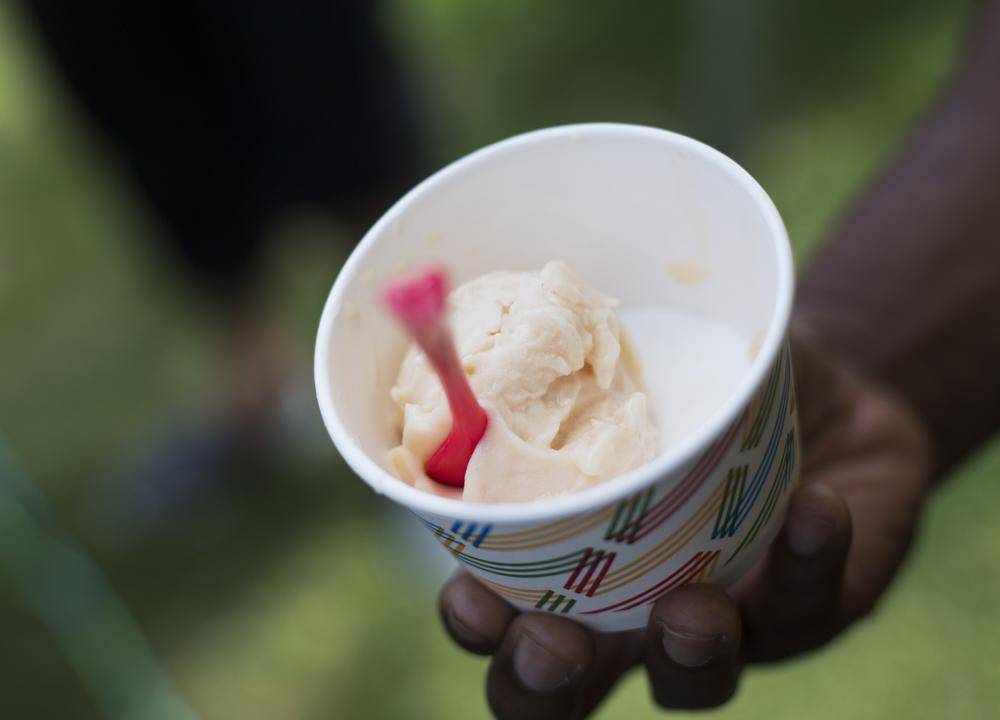 A rare healthy treat at the Ex, 100 per cent fruit juice is flash-frozen with a spray of liquid nitrogen, turning it into a fat-free, sweet sorbet.
