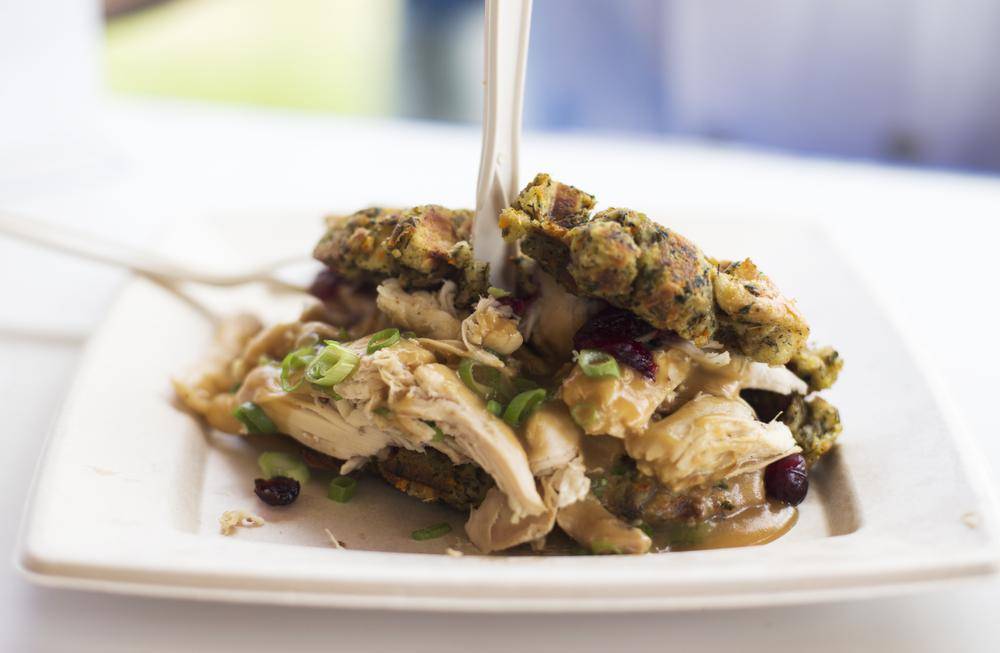Fran’s restaurant, a Toronto institution, has transformed its Thanksgiving dinner into a portable version: a waffle made out of cranberry stuffing, topped with roast turkey, mashed potatoes and gravy.