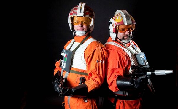 (left to right) John VanOphem and Gil Guanes pose dressed as X-wing fighter pilots from the movie Star Wars at Comic Con, a comic book and Sci-Fi convention in Toronto on Saturday march 27, 2010.Roger Hallett