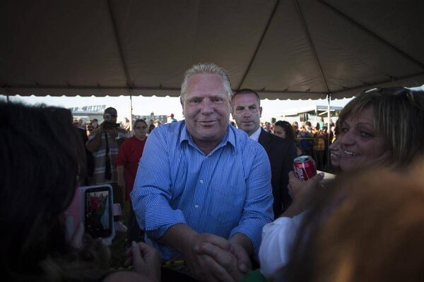 Doug Ford greets supporters as he arrives at Ford Fest in Toronto on Saturday September 27, 2014.Chris Young/The Canadian Press
