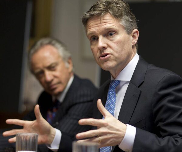 Ontario Lottery and Gaming Corporation President and CEO Rod Phillips, right, and OLG Chair, Paul Godfrey speak to reporters and members of the editorial board at The Globe and Mail in Toronto on March 11, 2013.Peter Power/The Globe and Mail