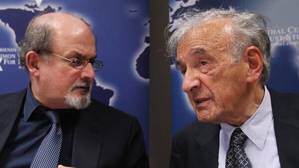 The event unfolded under the cloud of an Israeli attack on a flotilla of activists attempting to reach the Gaza Strip. While both Mr. Rushdie and Mr. Wiesel said they didn't know much about the event, Mr. Rushdie noted that the aid convoy had both a Holocaust survivor and a Nobel Peace Prize winner on board.