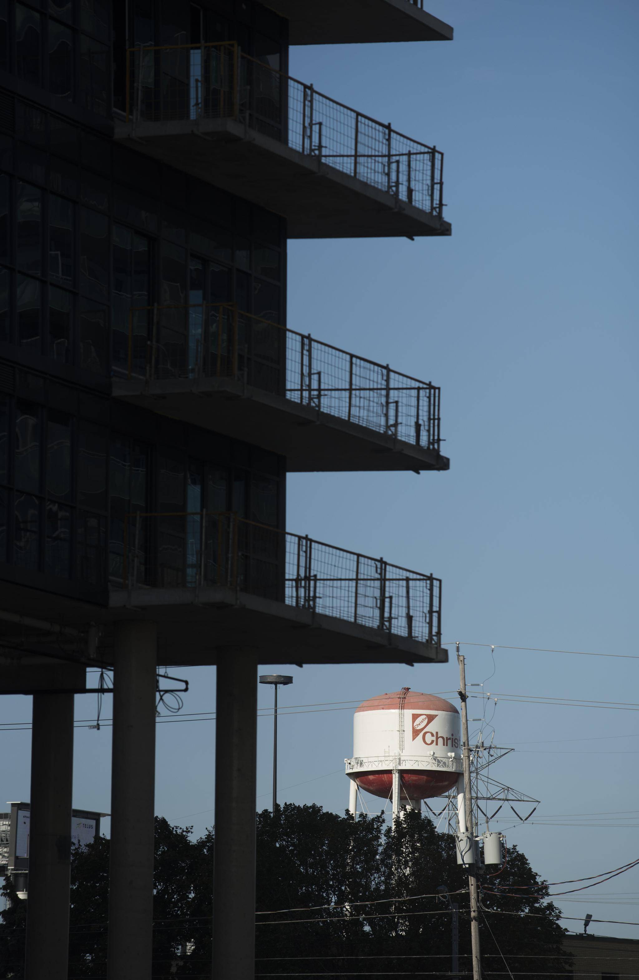 A few decades ago, the backdrop to the Christie's bakery tower as seen from the Gardiner Expressway was the water of Lake Ontario. Today, looming large behind the bakery's iconic water tower is a phalanx of condo buildings. And soon, those condos may be moving a little closer.