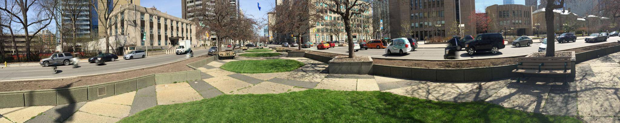 University Avenue may be the least wild place in Toronto, with eight lanes of traffic running between great walls of stone and concrete. But it’s a landscape. Look around: On the islands in the boulevard, lawns, copses, planters, fountains and benches form a modernist tapestry all the way from College to Richmond Street.