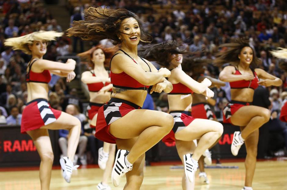Onto the brightly lit basketball court the 22 members of the Raptors Dance Pak shimmy into formation, shaking their miniskirts for 20,000 screaming fans crammed inside Toronto’s Air Canada Centre.