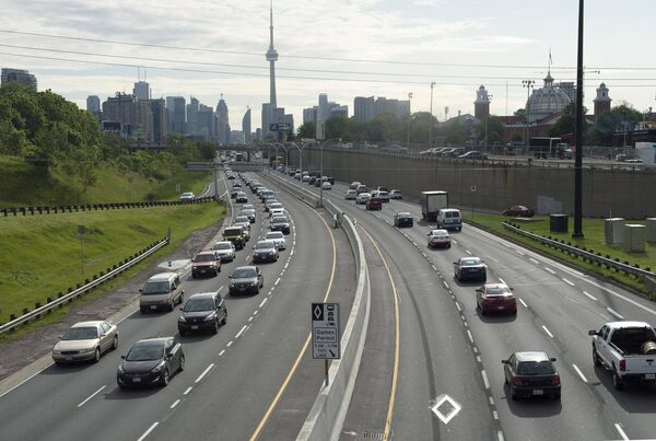 Vehicles crawl past the nearly empty Pan Am high-occupancy vehicle lanes as morning rush hour traffic crawls in Toronto on Monday, June 29, 2015.Frank Gunn/The Canadian Press