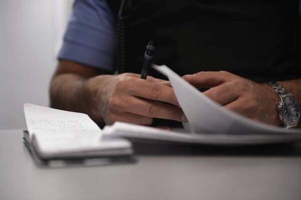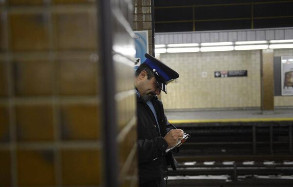 TTC Transit Enforcement officer Carlos Uncao writes notes after helping a woman who fainted at the Davisville subway station.Fred Lum/The Globe and Mail