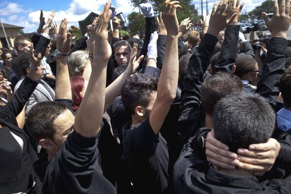 Mourners raise their hands to try to block cameras following Yatim’s funeral.Moe Doiron/The Globe and Mail