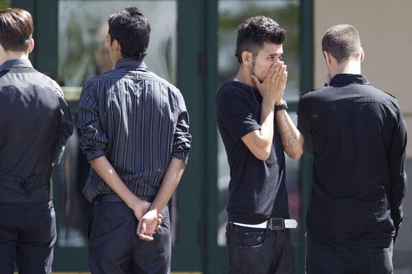 Sahar Bahadi, mother of Sammy Yatim, is surrounded by mourners following the funeral for her son. The 18-year-old was shot dead by police during a standoff early Saturday in Toronto.Moe Doiron/The Globe and Mail