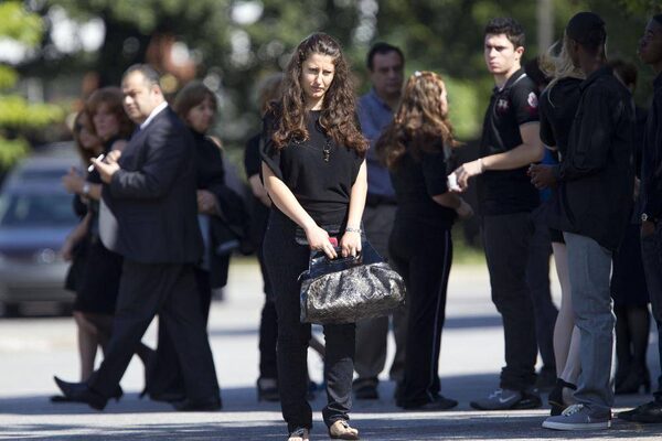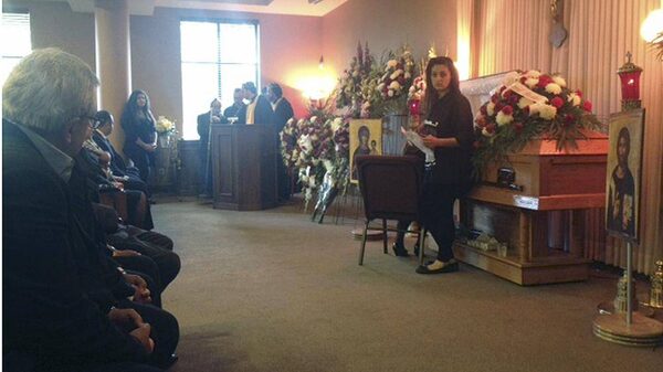 In a photo provided by family, Sammy Yatim’s sister Sarah speaks at his funeral in Scarborough on Aug. 1, 2013.