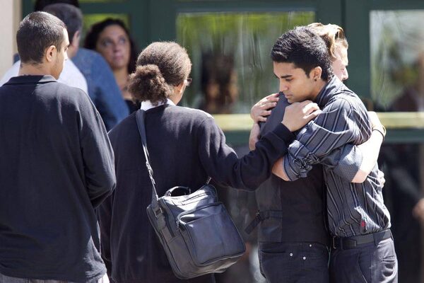 Mourners embrace after Yatim’s funeral.Moe Doiron/The Globe and Mail