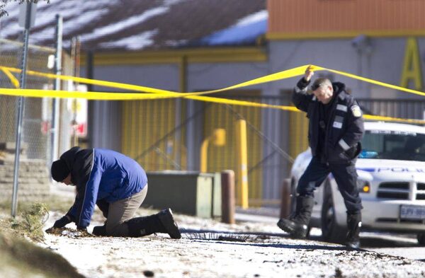 The scene on a street in Brampton, Ont., on Jan. 24, 2013 where a 9-year old boy was shot late Wednesday evening, and later died of his injuries.Peter Power/The Globe and Mail