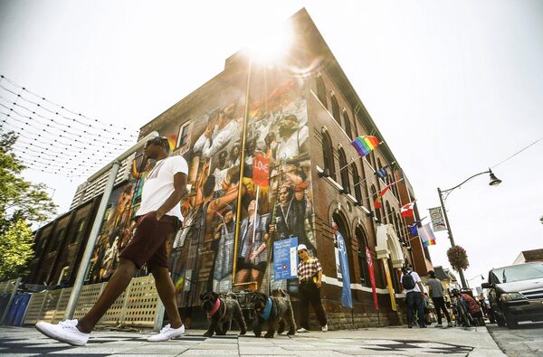 A man walks by PrideHouse Toronto following their opening ceremony ahead of the Pan American Games in Toronto Wednesday, July 8, 2015.Mark Blinch/The Canadian Press