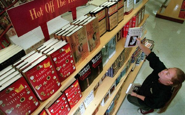Worlds Biggest Book store employee Shelley Ashbury stocks newly printed Canadian books in Toronto, Sept. 18, 1997.CP PHOTO