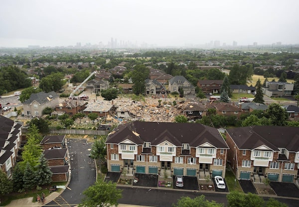 Firefighters and emergency personal work at the scene after a home explosion happened in Mississauga, Ont., on Tuesday, June 28, 2016.Nathan Denette/The Canadian Press