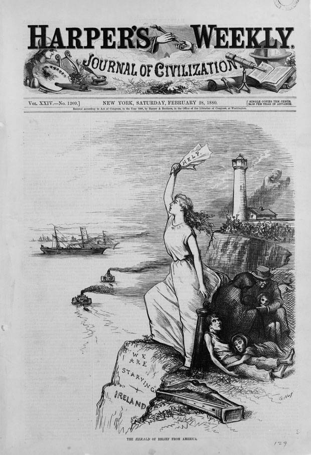 In 1845, when blight struck the Irish potato crop and destroyed it, Ireland was under colonial British rule and less than 5 per cent of the population owned 95 per cent of the land. The 95 per cent non-owners were Irish tenant farmers, little better than slaves, often living where little could grow except the nutritious potato. The blight struck again in 1846 and 1847. One million died of starvation. Those who could, fled.