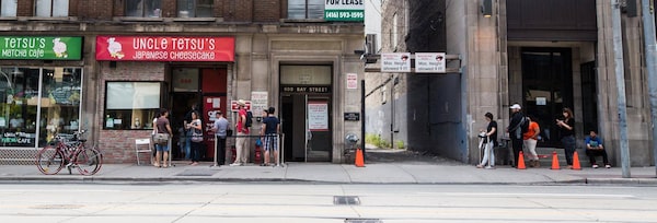 Reporter Dave McGinn braves the line-up at Uncle Tetsu's Japanese Cheesecake Thursday Aug. 7, 2015 to get his hands on one of the coveted cakes.Tim Fraser