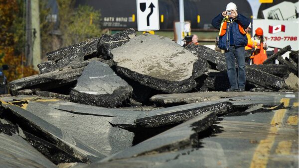 A large sinkhole closed a section of Bayview Avenue just north of Steeles Avenue as crews worked to repair the damage in Toronto, Ont. Nov. 3, 2011.Kevin Van Paassen