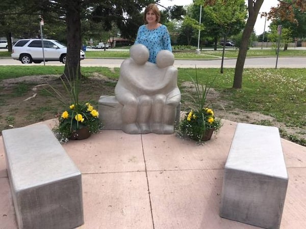 The sculpture titled The Healing Place sits on the grounds of Brampton Centennial Secondary School, where the school shooting took place on May 28, 1975. On that day, 16-year-old Michael Slobodian brought two rifles to school and opened fire killing fellow student John Slinger and English teacher Margaret Wright.