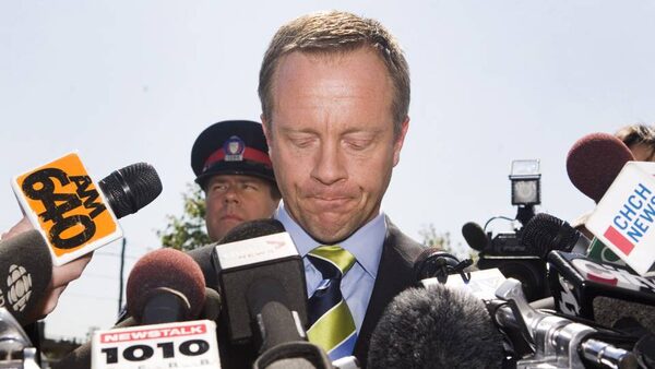 Former Ontario attorney-general Michael Bryant talks to media outside the Toronto Police Traffic Services on Tuesday, September 1, 2009. Bryant has been charged with criminal negligence causing death and dangerous operation of a motor vehicle causing death after a cyclist was killed.Darren Calabrese/CP