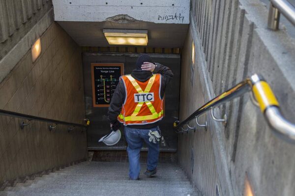 A TTC worker makes his way to the College station entrance on March 24 2015.CHRIS YOUNG/The Globe and Mail