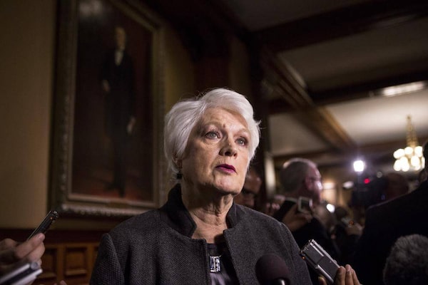Ontario's Education Minister Liz Sandals scrums with the media following question period at Queen's Park in Toronto on Tuesday, March 3, 2015.Chris Young/The Canadian Press