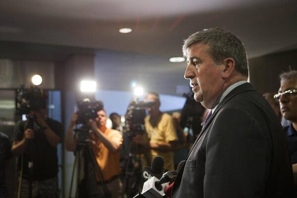 Glen Murray, Ontario Minister of Transportation and Minister of Infrastructure, speaks to the press at Toronto City Hall after a meeting with Toronto Mayor Rob Ford, discussing ways to pay for a proposed subway extension to Scarborough. )
