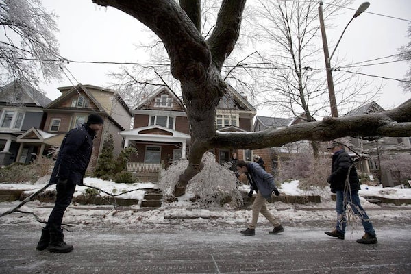 Pedestrians pass a fallen tree in Toronto on Dec. 21, 2013 after a devastating ice storm.Deborah Baic/The Globe and Mail