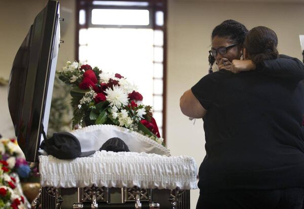 Christine Scott, the mother of Tyson Bailey, waits, at left with her walker, while one of Tyson's sisters says her final good-bye to her brother during the funeral for the 15-year old at the Seventh-Day Adventist Church on Bentworth Ave. in Toronto on Jan. 31, 2013.Peter Power/The Globe and Mail