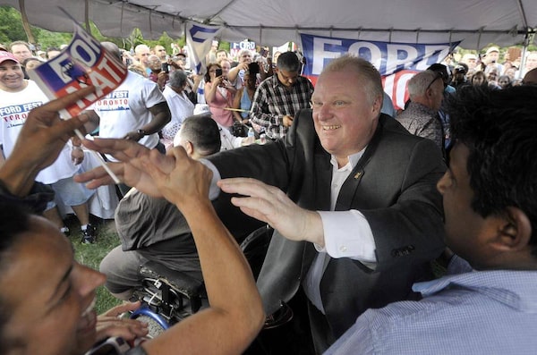 Mayor Ford was elected as mayor in 2010 in large part thanks to a surge of support from suburban voters. He focuses much of his campaigning on the city's outer neighbourhoods and has paid particular attention to Scarborough in recent months. He held the first of two planned public barbecues — dubbed Ford Fest — in a Scarborough park, drawing a crowd of hundreds of residents who lined up to get free food and shake hands with the mayor.
