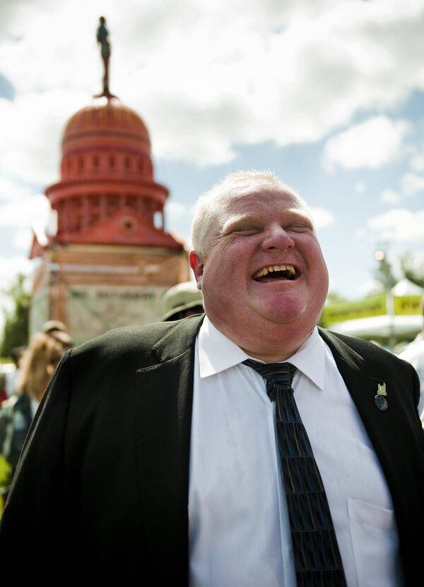 Toronto Mayor Rob Ford laughs near a statue resembling the Texas capitol while he and a delegation of government and industry officials get a tour of the Austin City Limits music festival at Zilker Park in Austin, TX on Fri., Oct. 3, 2013. The cities of Toronto and Austin recently passed resolutions to create a Music City Alliance.Ashley Landis/The Globe and Mail