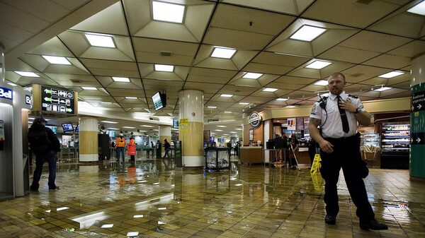 Water covers the floor at Union Station after heavy rains caused flooding in the subway station in Toronto on Friday, June 1, 2012.Aaron Vincent Elkaim