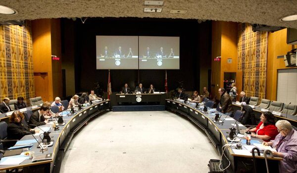 Donna Quan, far left, top, is shown inside the boardroom of the TDSB at the beginning of their meeting in Toronto on Jan. 16, 2013. The board is trying to decide upon a successor to Chris Spence, and Quan's is one name being suggested as a real possibility.Peter Power/The Globe and Mail